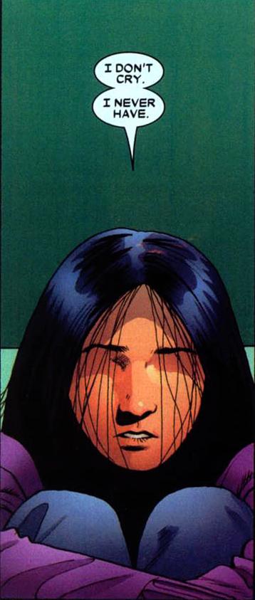 When Emma Frost was suffering from a bad case of survivor's guilt, Blindfold was found by Hisako "crying" in a restroom. While trying to comfort her, Blindfold tries to convince Hisako that they are going "to lose another one". Wolverine, believing he is a defenseless child due to the manipulations of Cassandra Nova, barged into the restroom asking for help as a feral Beast followed him in. Hisako leaves Blindfold and hides with Wolverine, unfortunately Beast targets Blindfold and goes to attack her. Hisako powers up and scares the feral X-Man away but passes out from exhaustion. Blindfold then takes her to the infirmary because she believes someone was awake only to find the unconscious bodies of Colossus and Cyclops. Eventually Shadowcat makes her way back to the Institute and asks the girls to tell her everything they know. When Kitty leaves to find out who exactly is attacking, Cyclops manages to contact Blindfold and instruct her to give Beast a special box containing a ball of string. He also asks her to keep his mind safe from any sort of psychic attacks as he helps Emma. During the middle of the battle, Ord and the Danger Room entity interrupt and a battle begins between the X-Men, Hisako, Ord and Danger. Suddenly S.W.O.R.D. beamed the team, Danger, Ord, and Hisako into a spaceship headed for the Breakworld. Blindfold was last seen watching them along with a few other students and commented that not all of them will come back.