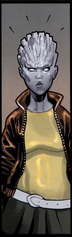 After an attack by Emplate, everybody living on Utopia is warned to stay close together and report anything out of the ordinary. Roxy, sick of watching Rockslide and Hellion fooling around decides to go check out an amphitheatre to which Onyxx warns her not to go alone but says she will stay in sight. While looking out into the water she notices a lighthouse which suddenly starts moving towards the shore before disappearing. After it reappears behind her, she's pulled in where she is greeted by Emplate, who claims dinner is served. After being held as his prisoner, Roxy attempts to fight back against him only to fail until Rogue shows up to save her. After a long battle that destroys his home and briefly anchors him to the X-Men's plane of existence, they drive him away. Later during a conversation with Surge, Mercury and Trance, Roxy reveals she now has a crush on Rogue.