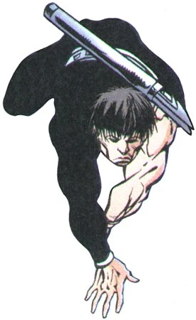 Harpoon is a mutant with the superhuman power to transform longitudinal objects into various unknown forms of energy. He can imbue any such object with this energy, but the amount of energy varies with the size of the object. Harpoon must have thrown the object in order to transform it into energy. By throwing it, he can also charge the object with energy without actually transforming it to energy. Depending on the form of energy with which he imbues them, Harpoon's weapons can stun, paralyze, kill, explode, or disintegrate a living victim or inanimate target