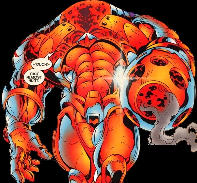 Crystalline Armor: Holocaust usually wore a high impact, crystalline suit of armor that essentially acted as a highly durable containment suit. Wearing this suit allowed him to remain in a cohesive form without having to constantly absorb ambient energies around him. When charged with life-force energies, the unique shapeshifting abilities of the armor allowed him to take on virtually any type of humanoid form. However, he had to constantly absorb life-force energies in order to maintain the feature of whatever form he had taken.
