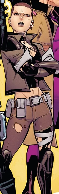 When the M-Pox crisis reached its climax and the X-Men went to war against the Inhumans over the toxicity of the Terrigen Cloud, Ellie almost used her powers of reality warping to render the cloud harmless to mutants. She was stopped by a time-travelling future version of herself from a timeline in which altering the cloud actually worsened the conflict. After her future self convinced her to let the conflict develop naturally, Negasonic fled the Mercs for Money to watch over Deadpool's mutant daughter Ellie Camacho until the conflict blew over. She would later return to the team, and help oppose the forces of Deadpool's ex-wife Shiklah when she invaded Manhattan.
