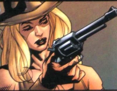 Inez Temple was born in Texas and as a child she was bullied by other children, who called her Crazy Inez. This nickname still enrages Inez. Due to her mutant strength, she was far stronger than her peers and beat them whenever they bullied her, but her father taught her to be responsible with her powers. When she grew up, she became a mercenary. She encountered Deadpool several times and flirted with him, but the two never really got a chance to hit it off. Outlaw was called in as a shooting instructor for Alex Hayden aka Agent X. They were both hired shortly afterwards to steal the Punisher's Colt .45 handguns and despite being competitors, they started a romantic relationship. They failed to steal the Punisher's guns and were locked up in a phone booth minus their weapons and clothes by Castle. The Punisher then killed the people who had sent them. After that Outlaw started to work with Agent X. When Alex announced his plans to set up a special agency for mercenaries, known as Agency X, she had to disappoint him though; her father had taken ill and she went back to Texas to be with him. She returned after her father died and discovered that in her absence Alex had had an affair with his secretary Sandi Brandenberg. Her rage vanished when she saw that Alex was being attacked by the Black Swan. Black Swan called Outlaw "Crazy Inez" and in a fit of rage, Outlaw punched straight through his torso. This wasn't enough to kill Black Swan though and together with Taskmaster and Sandi, they defeated the Black Swan. Outlaw and Alex continued their relationship (as did Sandi and Taskmaster). She aided Alex Hayden with his mercenary company, Agency X, but with the end of the Agent X series, she disappeared from the limelight.