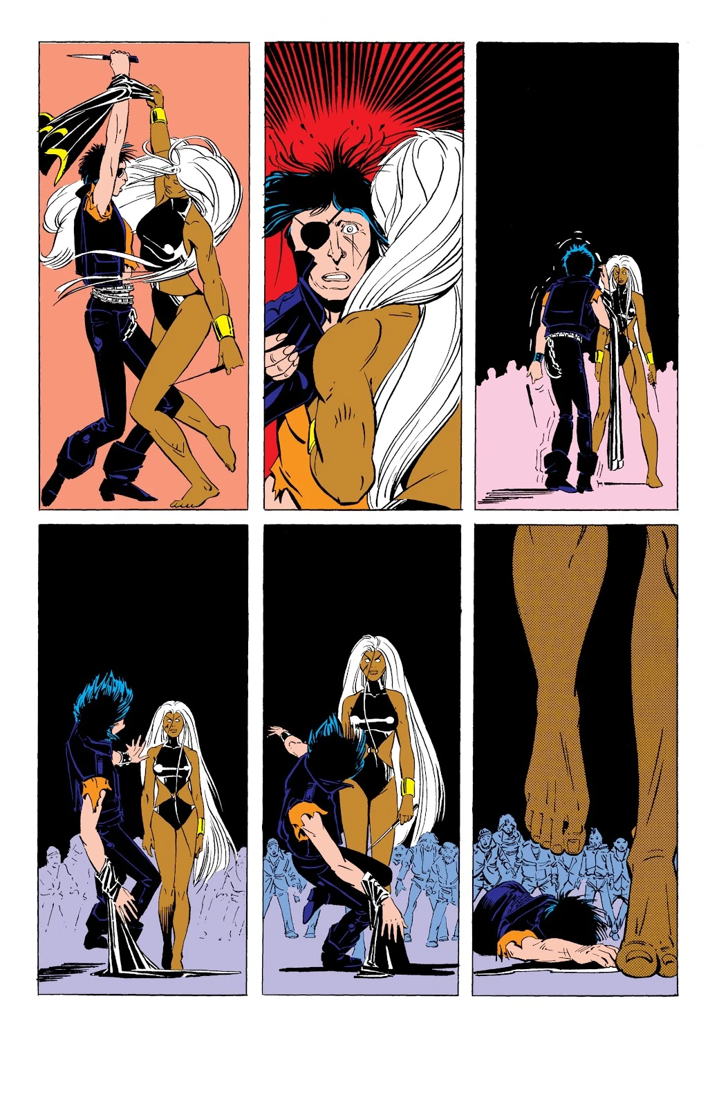 Itching to prove her skills as a thief, Ororo once stole a rare ruby-colored gem, the so-called “Heart of Eternal Darkness.” She did so against Achmed El Gibár’s direct orders. Only later, it would be discovered that the stone contained the essence of the immortal mutant Candra. Years later, when she was about twelve, Ororo felt a strong urge to wander south and left Cairo. During her travels, Ororo naively accepted a ride from a complete stranger and was almost raped by him. Forced to defend herself, Ororo killed the man and, from that moment, she swore never to take another human life.